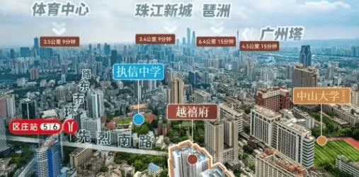 越禧府距地铁5号线号线,可直达珠江新城、金融城等核心商务区;通过6号线,可直达北京路、东山口等文化商圈。此外,项目周边还有地铁12号线号线二期(建设中),未来将形成“四地铁交汇”的交通枢纽,通勤效率进一步提升。15分钟生活圈的成熟度我们分析,越禧府的配套成熟度在广州核心区中属于“第一梯队”——教育、商业、医疗、交通等资源均为现成,无需等待规划落地。对于购房者而言,这意味着更低的居住成本和更高的生活品质。
